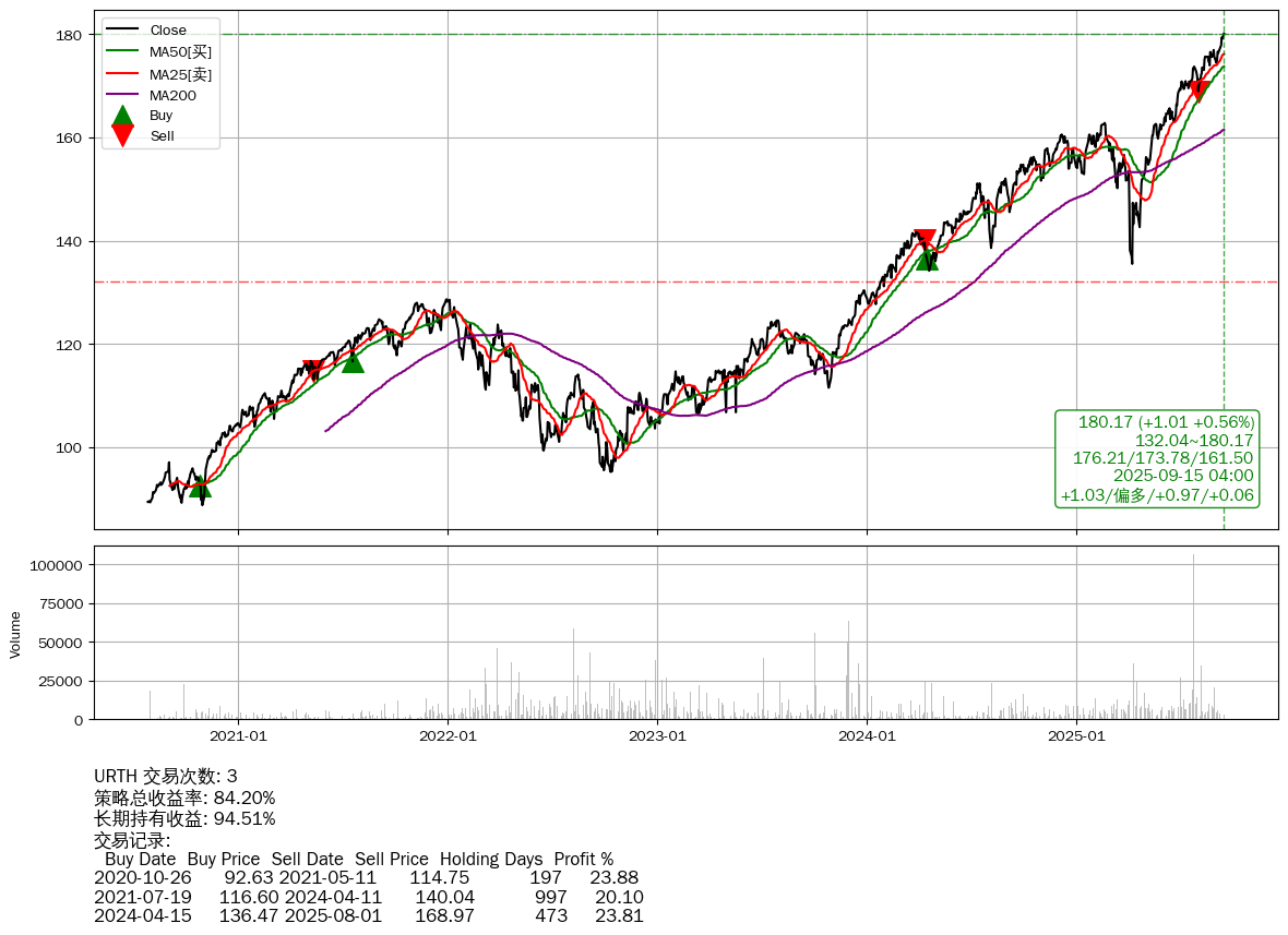 | 48 | ★URTH | +84.20% | +94.51% | -10.30% | 3 | +1.03/偏多/+0.97/+0.06 | 2020-07-27~2025-09-15 |