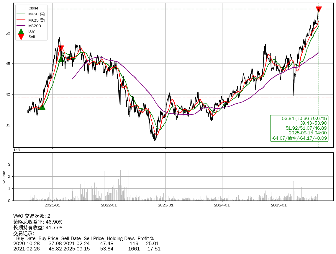 | 64 | ★VWO | +46.90% | +41.77% | +5.13% | 2 | -64.07/偏空/-64.17/+0.09 | 2020-07-27~2025-09-15 |