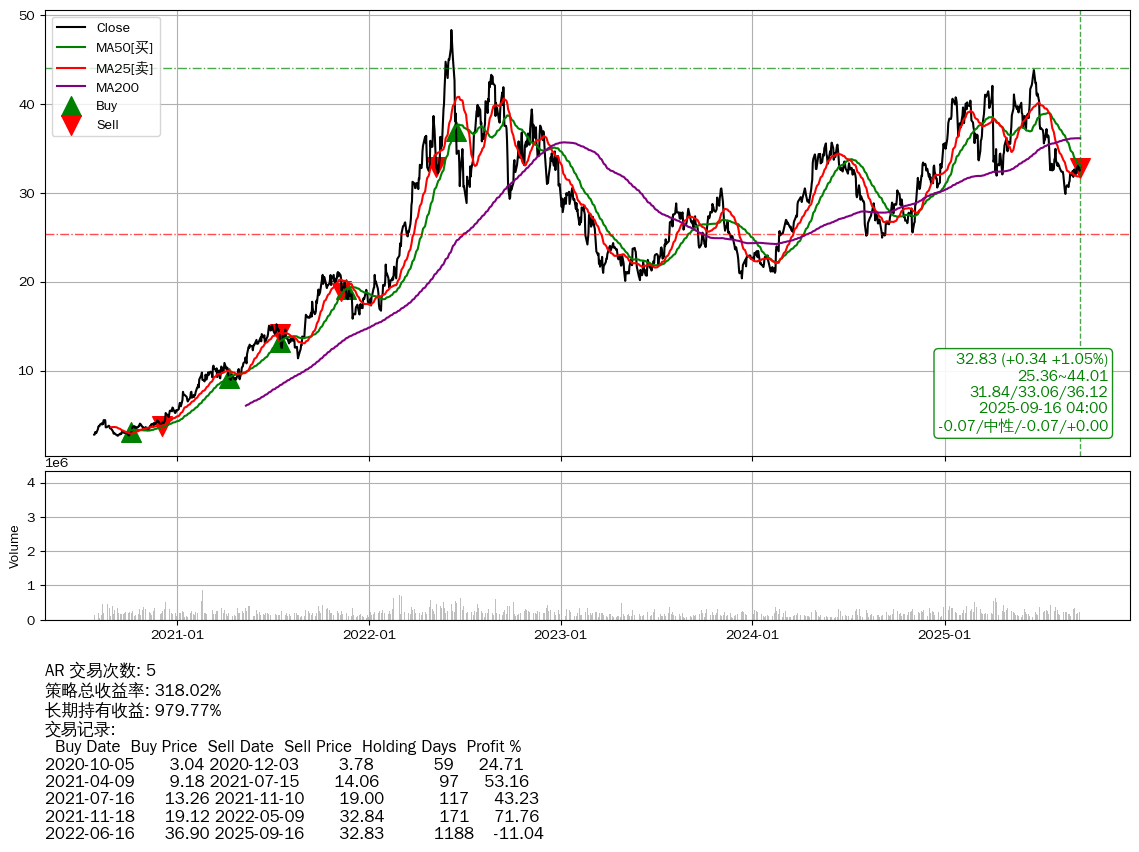 | 6 | 🟢AR | +318.02% | +979.77% | -661.75% | 5 | -0.07/中性/-0.07/+0.00 | 2020-07-27~2025-09-16 |