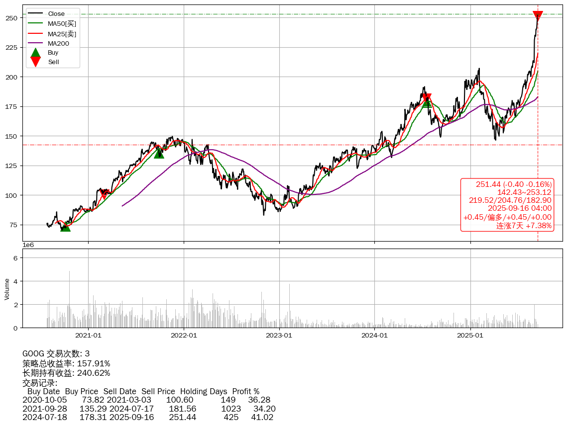 | 20 | ★GOOG | +157.91% | +240.62% | -82.71% | 3 | +0.45/偏多/+0.45/+0.00 | 2020-07-27~2025-09-16 |