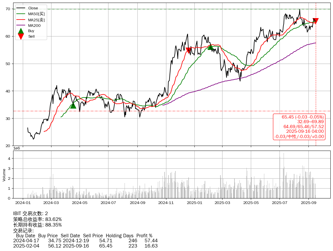| 40 | ★IBIT | +83.62% | +88.35% | -4.72% | 2 | -0.03/中性/-0.03/+0.00 | 2024-01-11~2025-09-16 |
