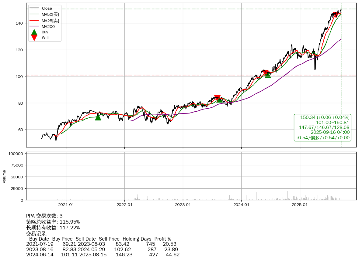 | 29 | ★PPA | +115.95% | +117.22% | -1.27% | 3 | +0.54/偏多/+0.54/+0.00 | 2020-07-29~2025-09-16 |