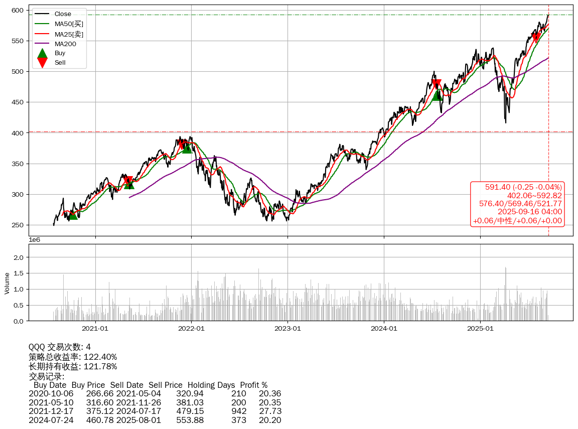 | 26 | ★QQQ | +122.40% | +121.78% | +0.61% | 4 | +0.06/中性/+0.06/+0.00 | 2020-07-27~2025-09-16 |