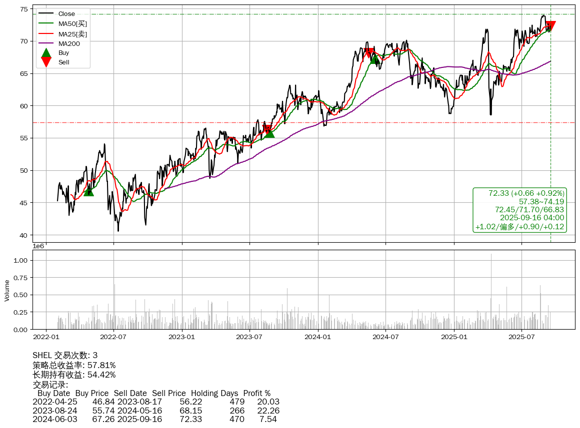 | 51 | 🟢SHEL | +57.81% | +54.42% | +3.39% | 3 | +1.02/偏多/+0.90/+0.12 | 2022-02-01~2025-09-16 |