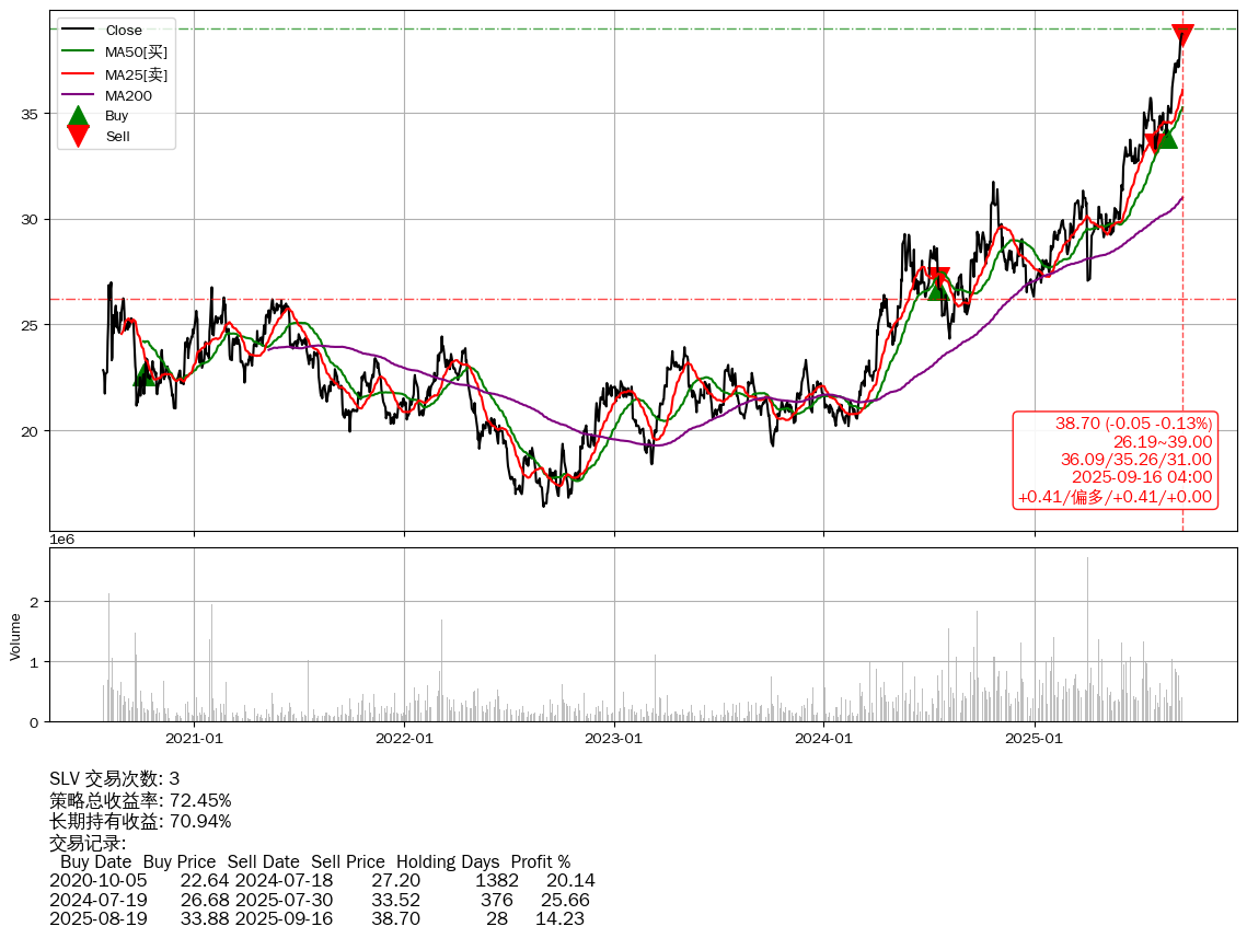 | 45 | ★SLV | +72.45% | +70.94% | +1.51% | 3 | +0.41/偏多/+0.41/+0.00 | 2020-07-27~2025-09-16 |