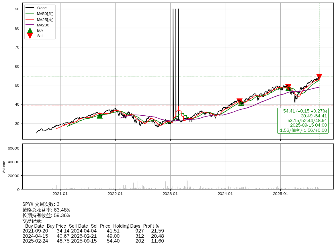 | 49 | ★SPYX | +63.48% | +59.36% | +4.13% | 3 | -1.56/偏空/-1.56/+0.00 | 2020-07-28~2025-09-15 |
