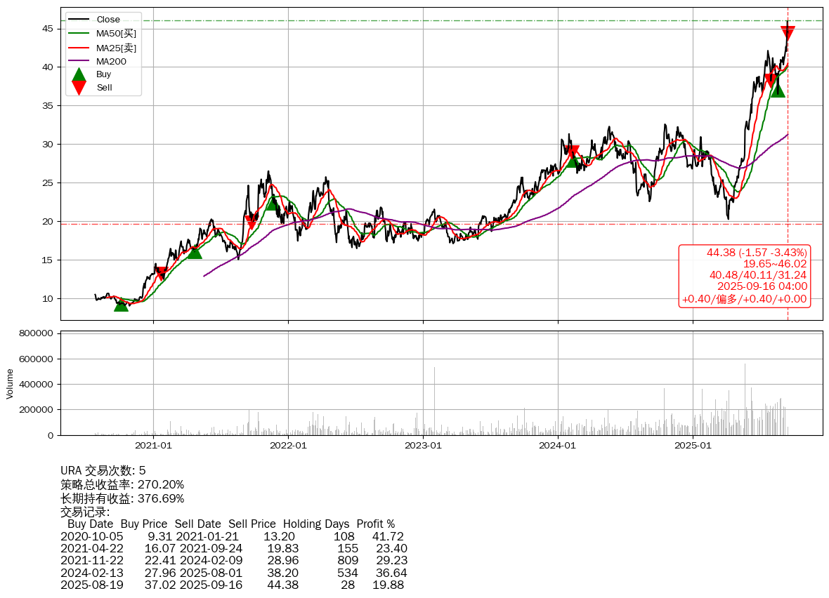 | 9 | ★URA | +270.20% | +376.69% | -106.49% | 5 | +0.40/偏多/+0.40/+0.00 | 2020-07-27~2025-09-16 |