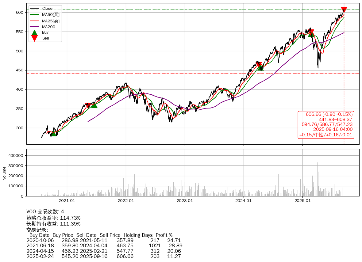 | 30 | ★VOO | +114.73% | +111.39% | +3.34% | 4 | +0.15/中性/+0.16/-0.01 | 2020-07-27~2025-09-16 |