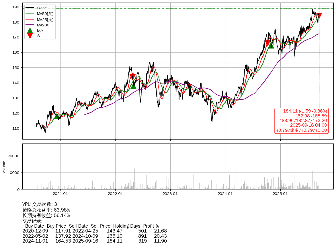 | 48 | ★VPU | +63.98% | +56.14% | +7.83% | 3 | +0.79/偏多/+0.79/+0.00 | 2020-07-27~2025-09-16 |