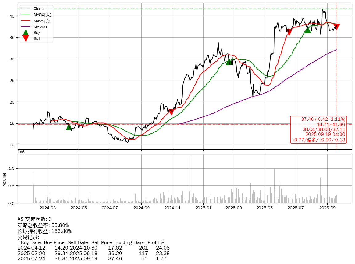 | 67 | AS | +55.80% | +163.80% | -108.00% | 3 | +0.77/偏多/+0.90/-0.13 | 2024-02-01~2025-09-19 |