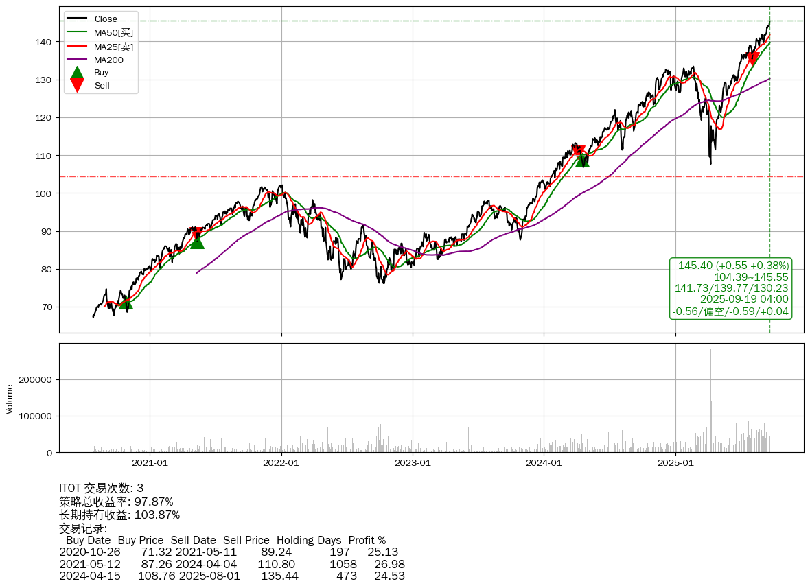 | 43 | ITOT | +97.87% | +103.87% | -6.00% | 3 | -0.56/偏空/-0.59/+0.04 | 2020-07-27~2025-09-19 |