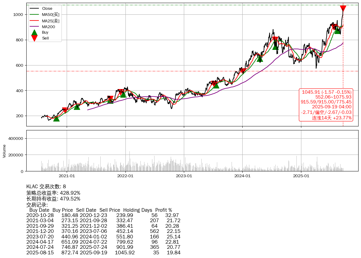 | 5 | KLAC | +428.92% | +479.52% | -50.59% | 8 | -2.71/偏空/-2.67/-0.03 | 2020-07-27~2025-09-19 |