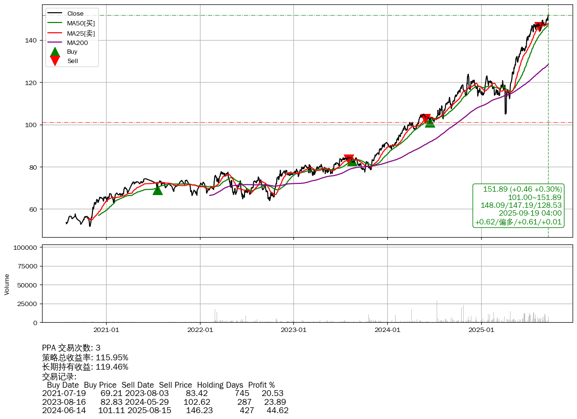 | 36 | ★PPA | +115.95% | +119.46% | -3.51% | 3 | +0.62/偏多/+0.61/+0.01 | 2020-07-29~2025-09-19 |