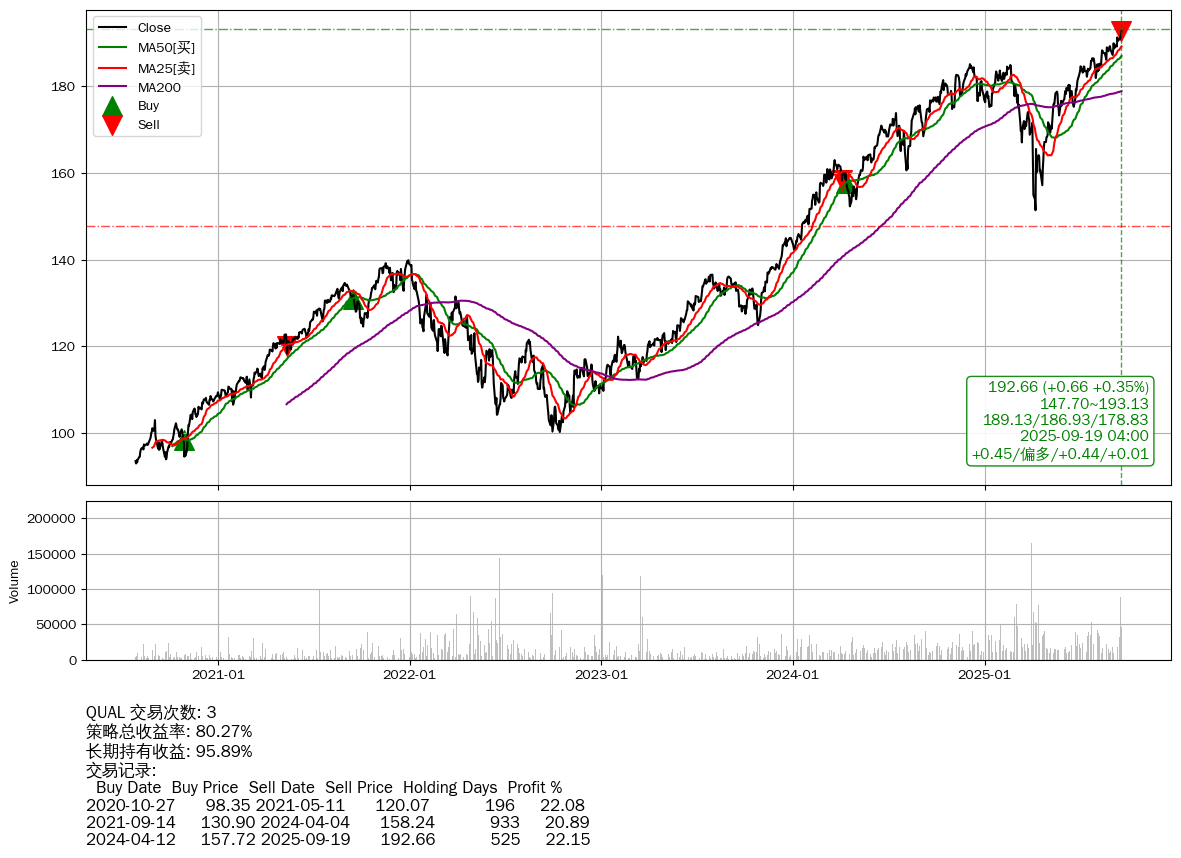 | 55 | ★QUAL | +80.27% | +95.89% | -15.62% | 3 | +0.45/偏多/+0.44/+0.01 | 2020-07-27~2025-09-19 |