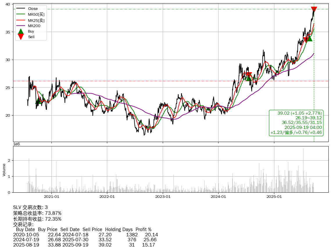 | 58 | ★SLV | +73.87% | +72.35% | +1.52% | 3 | +1.23/偏多/+0.76/+0.46 | 2020-07-27~2025-09-19 |