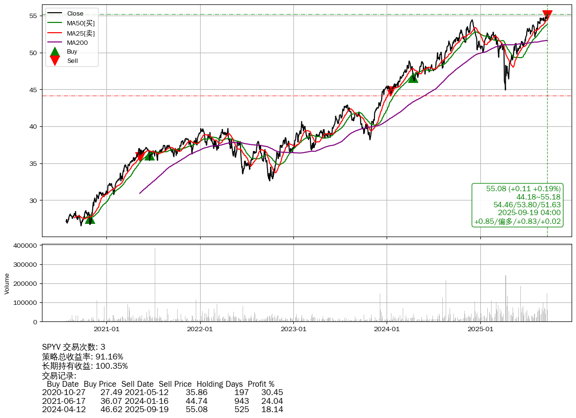 | 46 | SPYV | +91.16% | +100.35% | -9.18% | 3 | +0.85/偏多/+0.83/+0.02 | 2020-07-27~2025-09-19 |