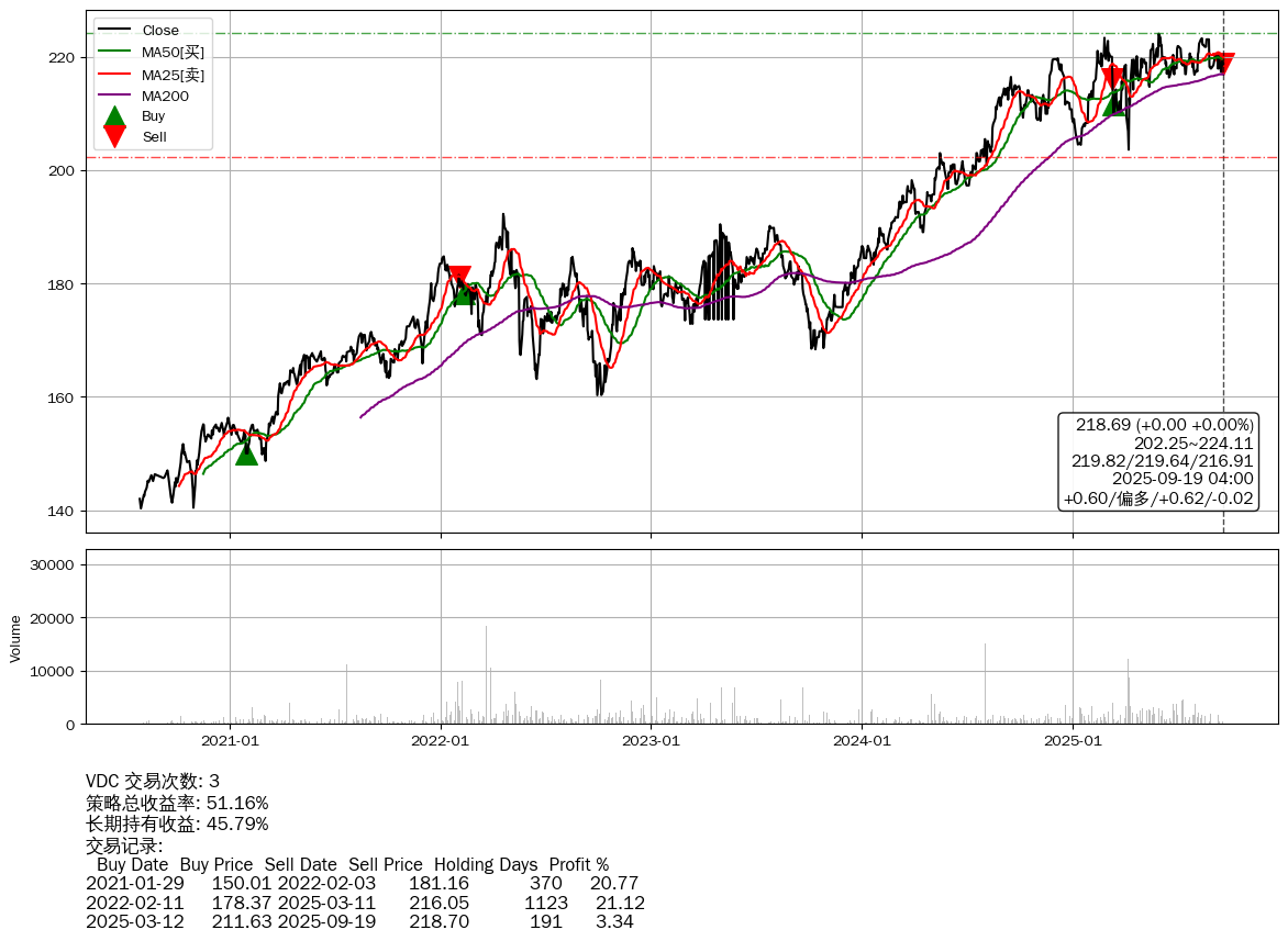| 23 | ★VGT | +164.44% | +146.01% | +18.43% | 5 | +0.35/偏多/+0.28/+0.07 | 2020-07-27~2025-09-19 |