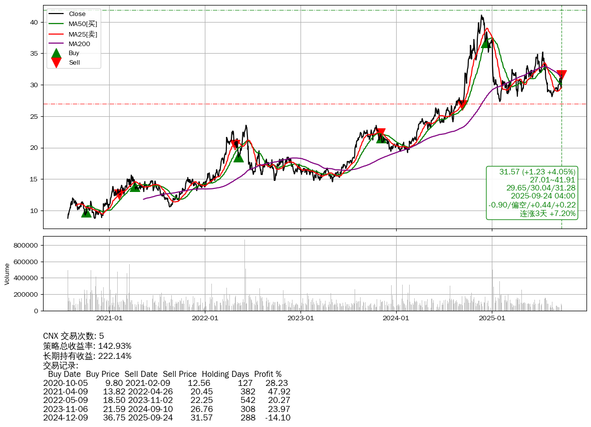 | 30 | CNX | +142.93% | +222.14% | -79.21% | 5 | -0.90/偏空/+0.44/+0.22 | 2020-07-27~2025-09-24 |