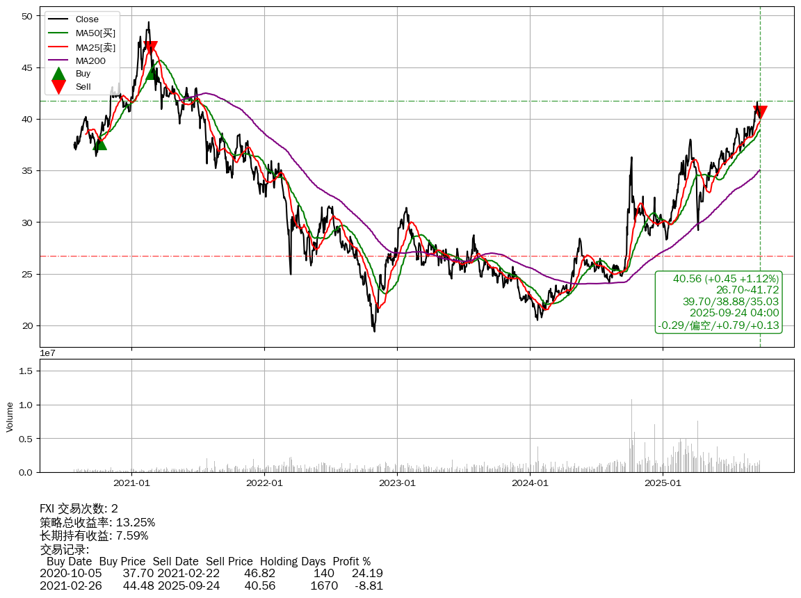 | 71 | ★FXI | +13.25% | +7.59% | +5.66% | 2 | -0.29/偏空/+0.79/+0.13 | 2020-07-27~2025-09-24 |