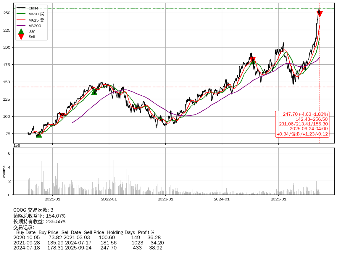 | 27 | ★GOOG | +154.07% | +235.55% | -81.48% | 3 | +0.34/偏多/+1.23/-0.12 | 2020-07-27~2025-09-24 |