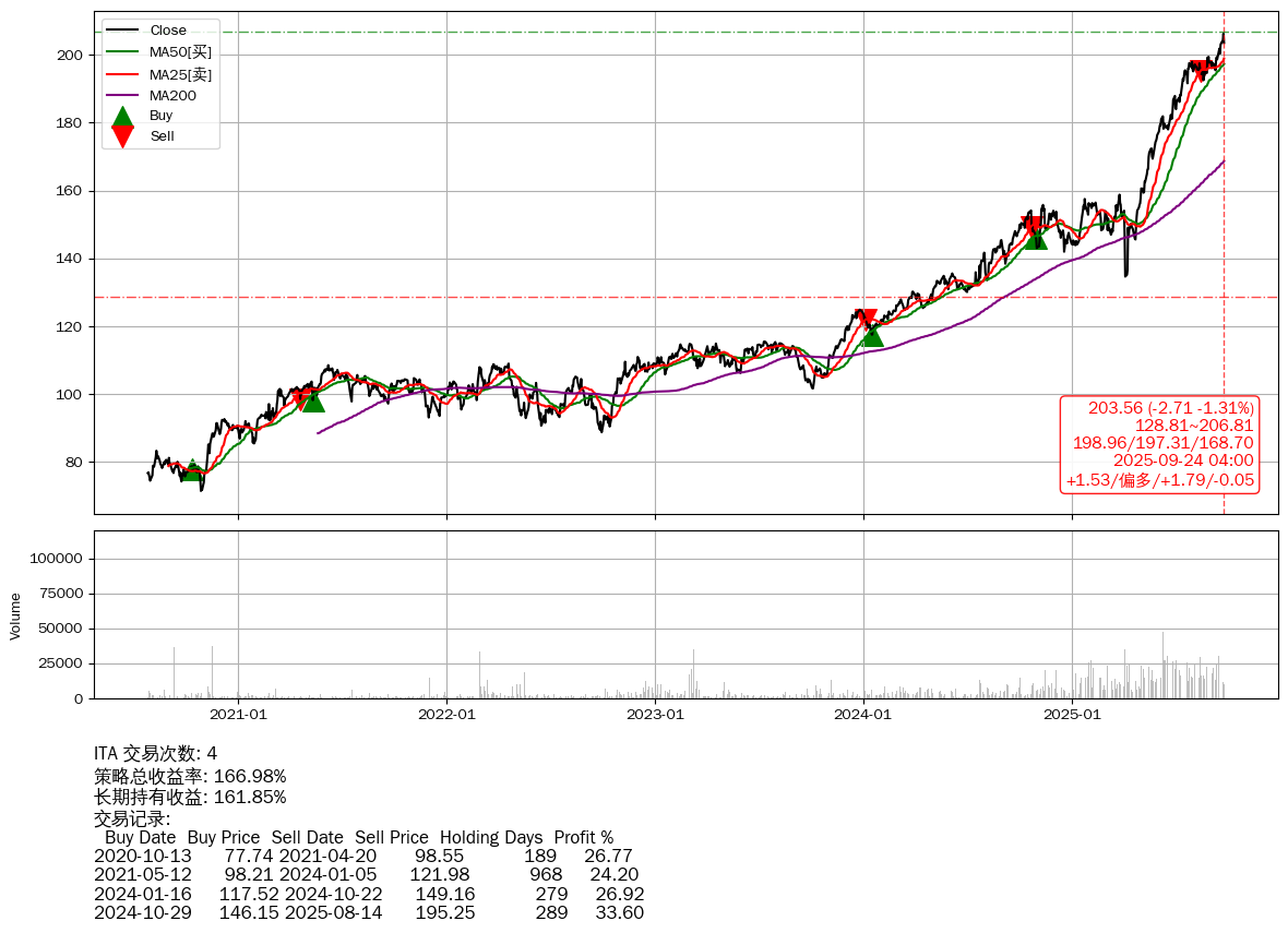 | 24 | ★ITA | +166.98% | +161.85% | +5.13% | 4 | +1.53/偏多/+1.79/-0.05 | 2020-07-27~2025-09-24 |