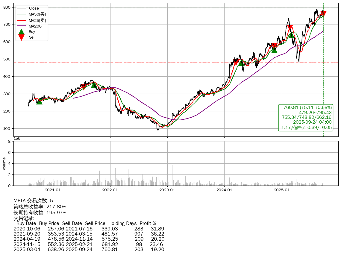 | 17 | ★META | +217.80% | +195.97% | +21.84% | 5 | -1.17/偏空/+0.39/+0.05 | 2020-07-27~2025-09-24 |