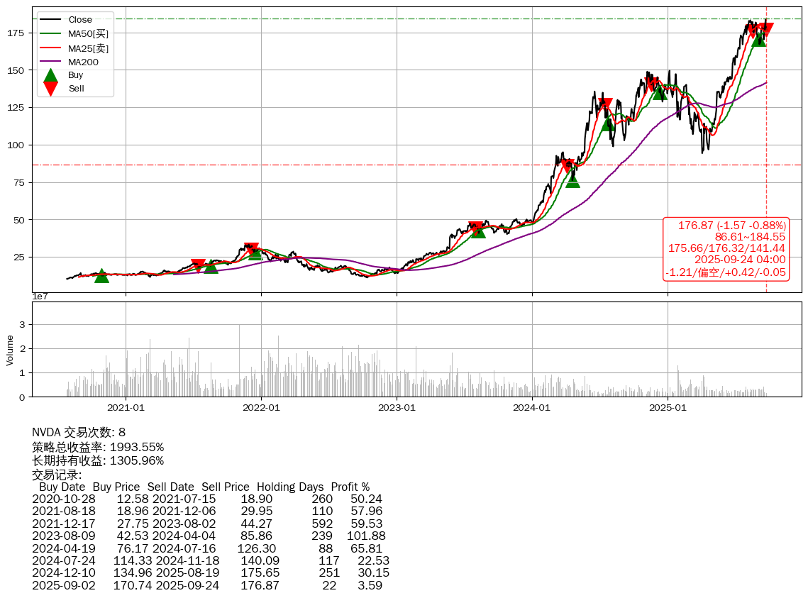 | 1 | ★NVDA | +1993.55% | +1305.96% | +687.59% | 8 | -1.21/偏空/+0.42/-0.05 | 2020-07-27~2025-09-24 |