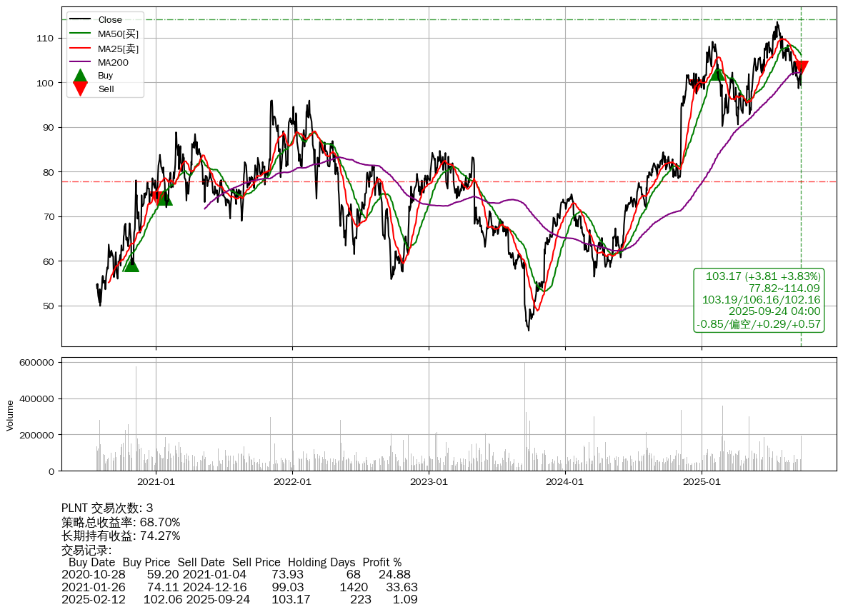 | 58 | PLNT | +68.70% | +74.27% | -5.58% | 3 | -0.85/偏空/+0.29/+0.57 | 2020-07-27~2025-09-24 |