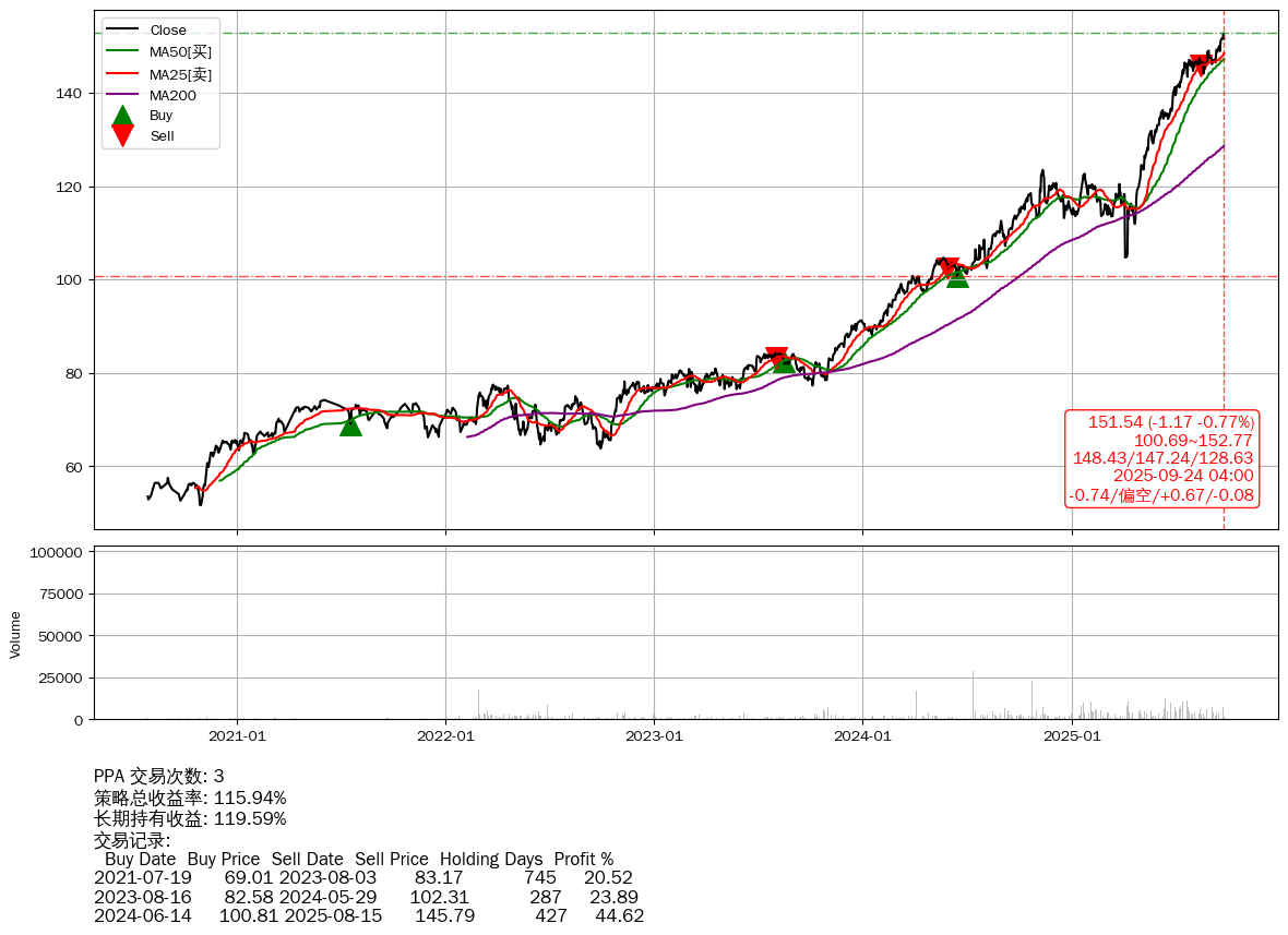 | 40 | ★PPA | +115.94% | +119.59% | -3.66% | 3 | -0.74/偏空/+0.67/-0.08 | 2020-07-29~2025-09-24 |
