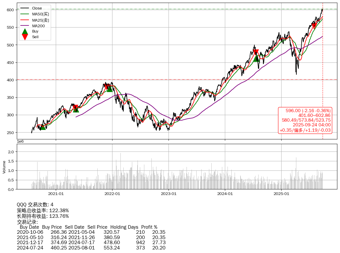 | 36 | ★QQQ | +122.38% | +123.76% | -1.38% | 4 | +0.35/偏多/+1.19/-0.03 | 2020-07-27~2025-09-24 |
