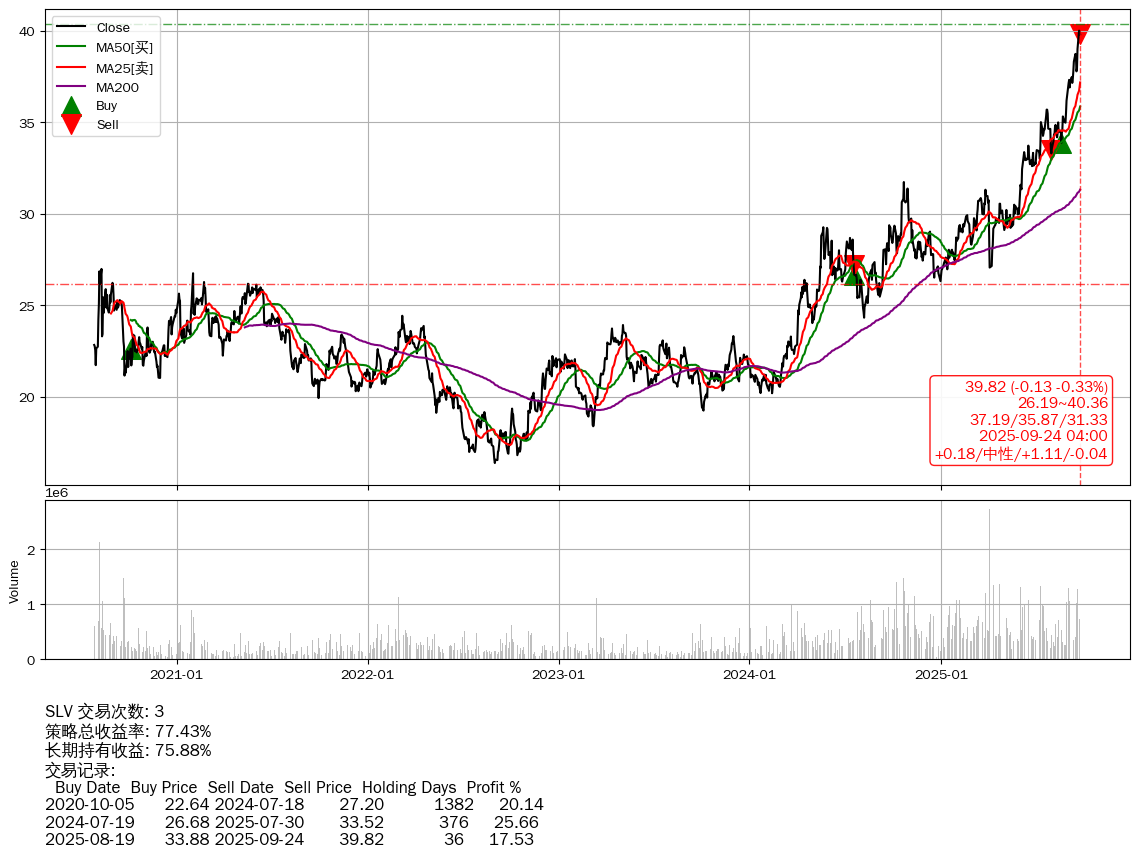 | 56 | ★SLV | +77.43% | +75.88% | +1.55% | 3 | +0.18/中性/+1.11/-0.04 | 2020-07-27~2025-09-24 |