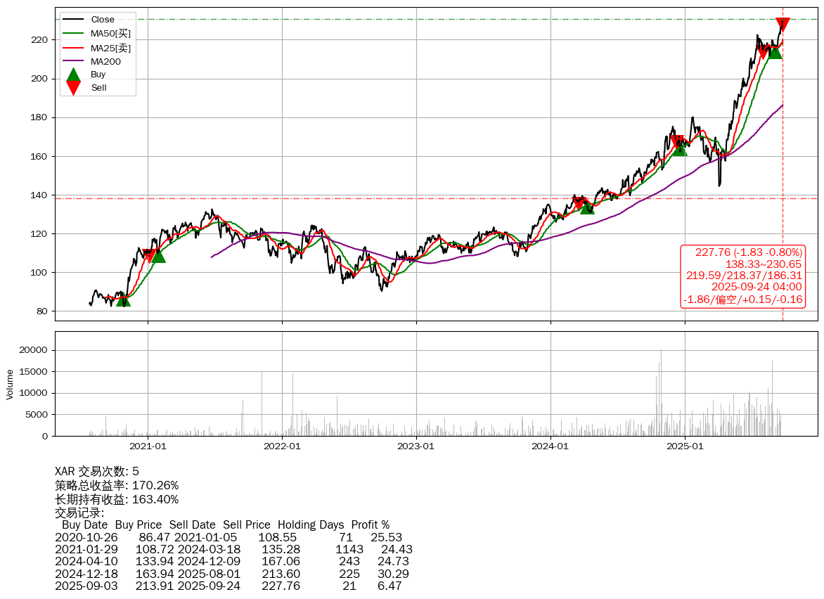 | 22 | ★XAR | +170.26% | +163.40% | +6.86% | 5 | -1.86/偏空/+0.15/-0.16 | 2020-07-27~2025-09-24 |