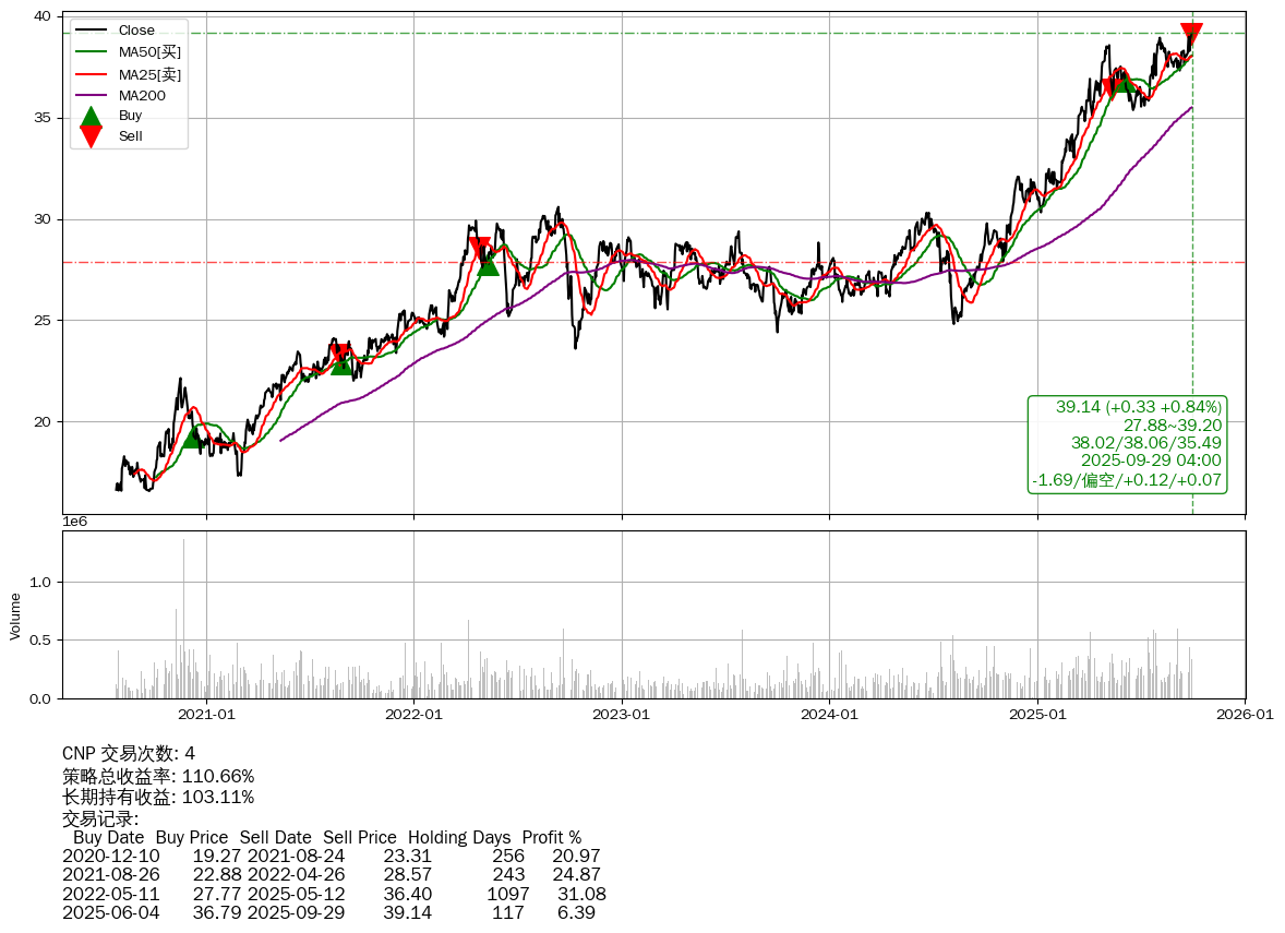 | 36 | ★CNP | +110.66% | +103.11% | +7.54% | 4 | -1.69/偏空/+0.12/+0.07 | 2020-07-27~2025-09-29 |