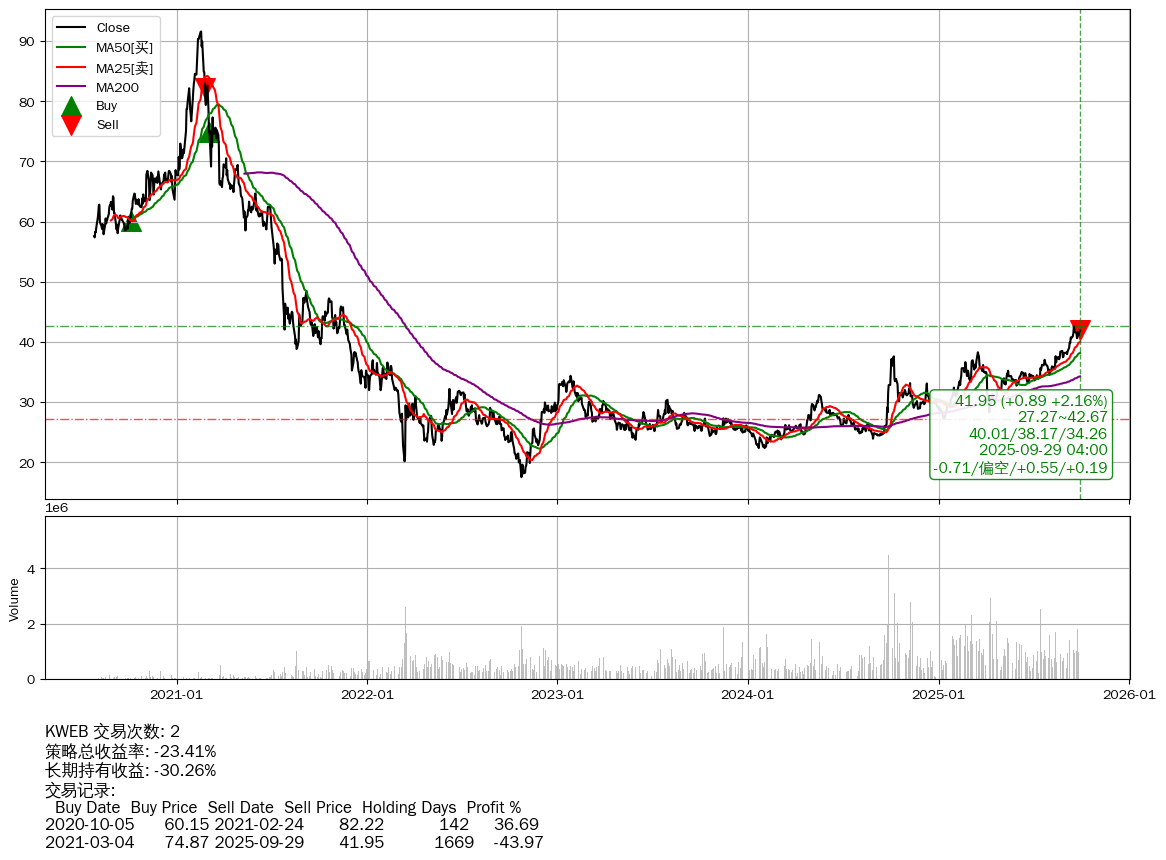 | 67 | ★KWEB | -23.41% | -30.26% | +6.85% | 2 | -0.71/偏空/+0.55/+0.19 | 2020-07-27~2025-09-29 |