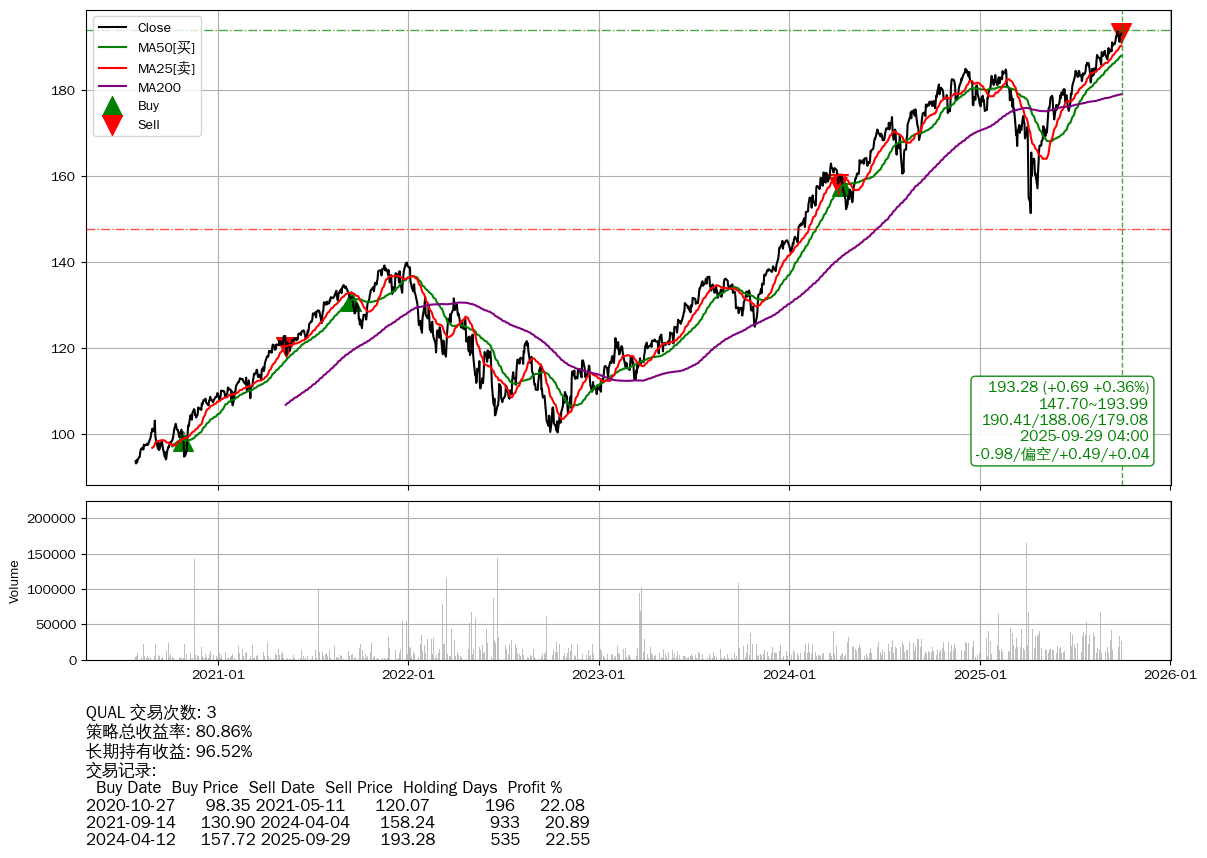 | 48 | ★QUAL | +80.86% | +96.52% | -15.66% | 3 | -0.98/偏空/+0.49/+0.04 | 2020-07-27~2025-09-29 |