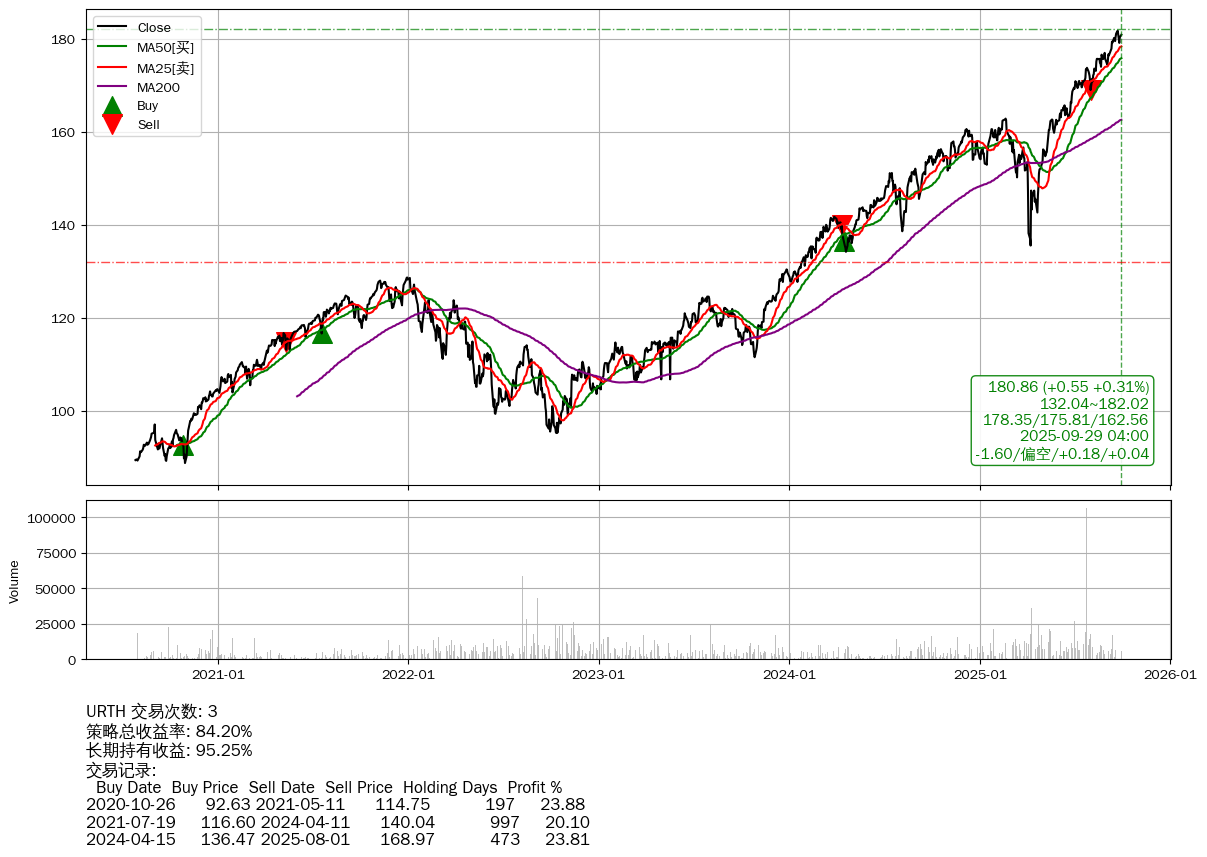 | 46 | ★URTH | +84.20% | +95.25% | -11.05% | 3 | -1.60/偏空/+0.18/+0.04 | 2020-07-27~2025-09-29 |