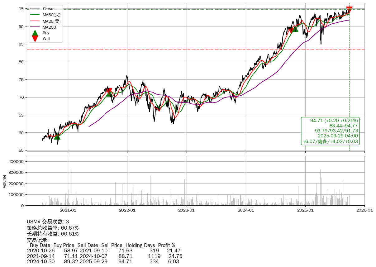 | 55 | ★USMV | +60.67% | +60.61% | +0.06% | 3 | +6.07/偏多/+4.02/+0.03 | 2020-07-27~2025-09-29 |