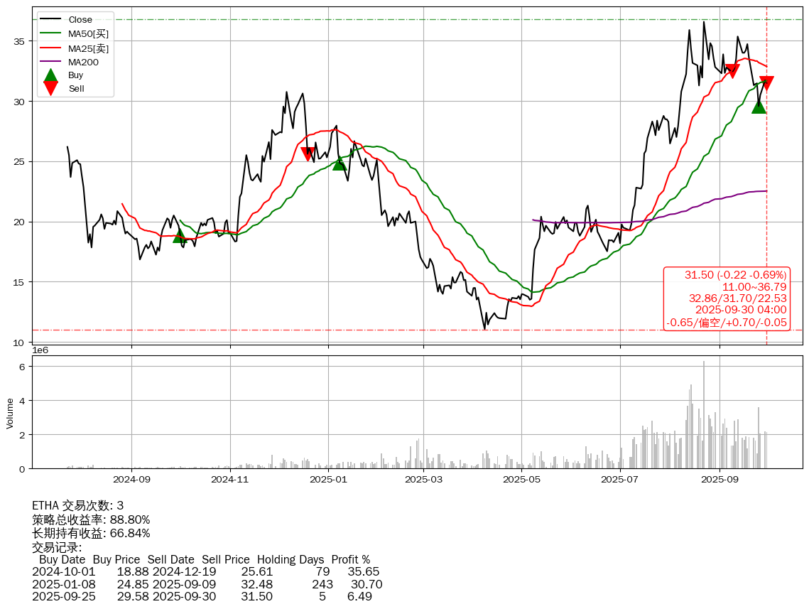| 48 | ★ETHA | +88.80% | +66.84% | +21.96% | 3 | -0.65/偏空/+0.70/-0.05 | 2024-07-23~2025-09-30 |