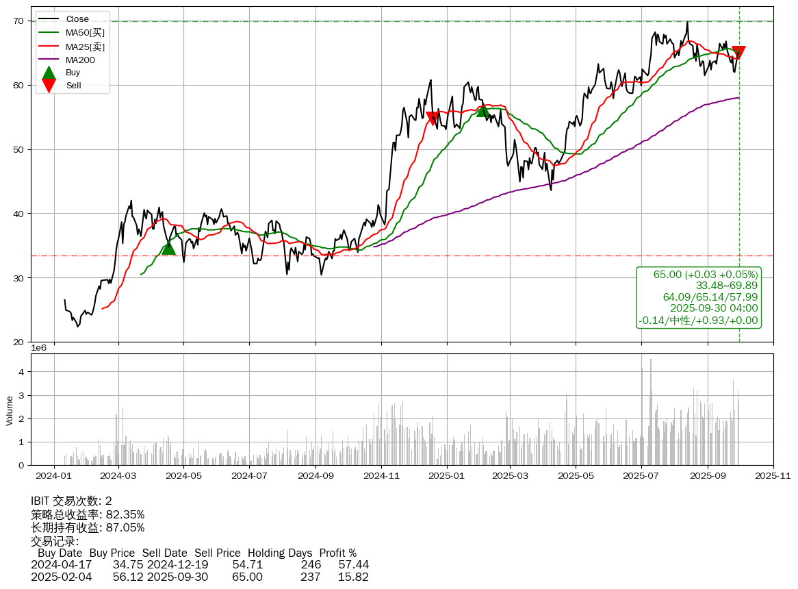 | 52 | ★IBIT | +82.35% | +87.05% | -4.70% | 2 | -0.14/中性/+0.93/+0.00 | 2024-01-11~2025-09-30 |