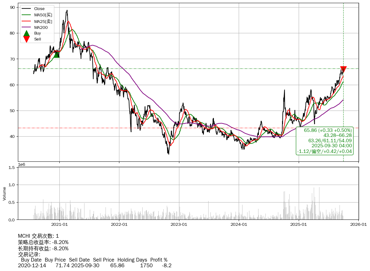| 71 | ★MCHI | -8.20% | -8.20% | +0.00% | 1 | -1.12/偏空/+0.42/+0.04 | 2020-07-27~2025-09-30 |