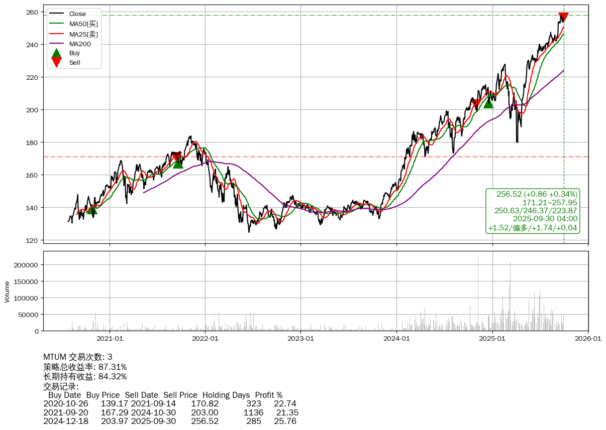 | 22 | ★MSFT | +188.06% | +157.04% | +31.01% | 6 | -1.16/偏空/+0.38/+0.08 | 2020-07-27~2025-09-30 |