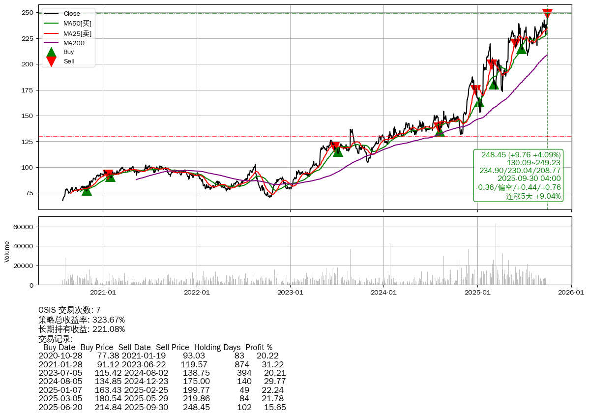 | 8 | OSIS | +323.67% | +221.08% | +102.59% | 7 | -0.36/偏空/+0.44/+0.76 | 2020-07-27~2025-09-30 |