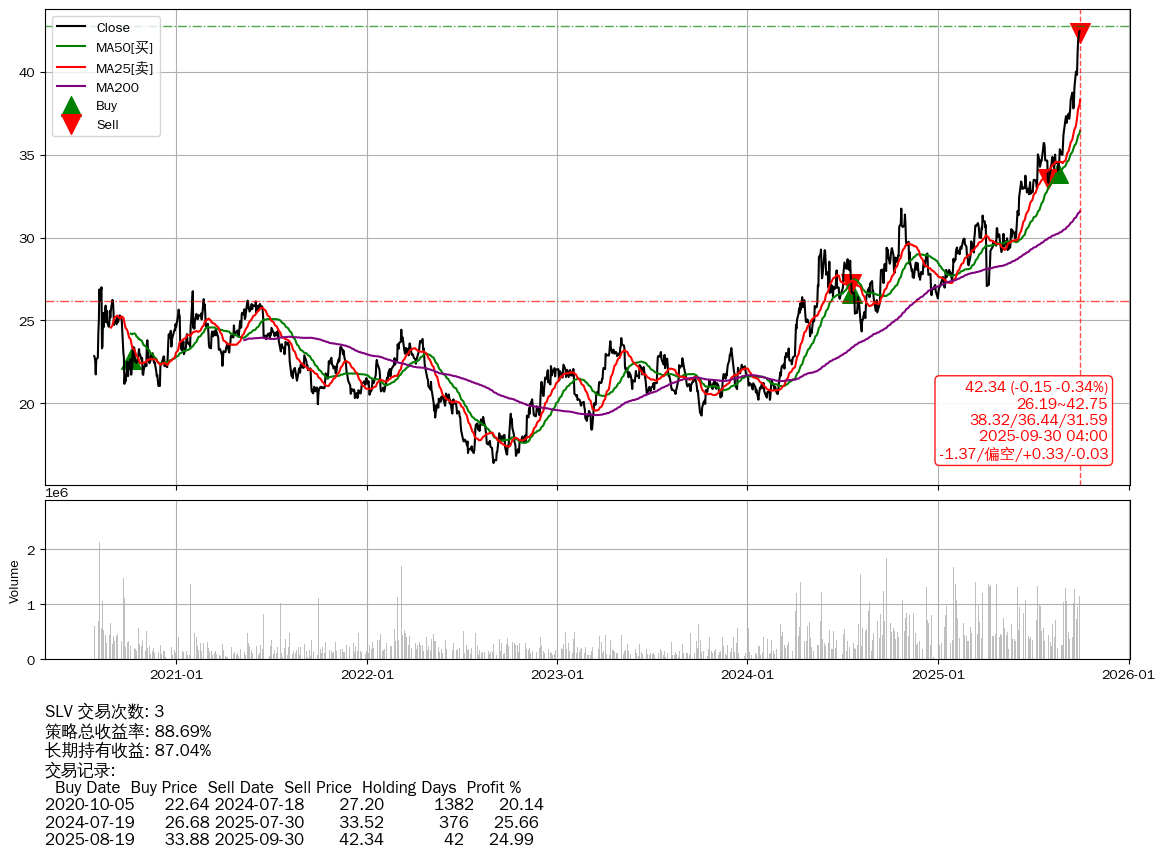 | 49 | ★SLV | +88.69% | +87.04% | +1.66% | 3 | -1.37/偏空/+0.33/-0.03 | 2020-07-27~2025-09-30 |