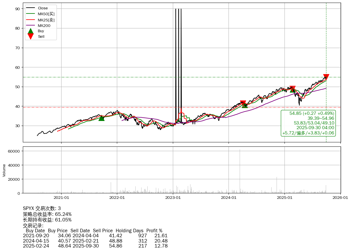 | 57 | ★SPYX | +65.24% | +61.05% | +4.19% | 3 | +5.72/偏多/+3.83/+0.06 | 2020-07-28~2025-09-30 |