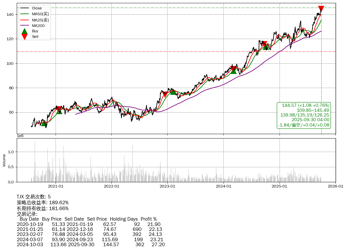 | 21 | ★TJX | +189.62% | +181.66% | +7.97% | 5 | -1.84/偏空/+0.04/+0.08 | 2020-07-27~2025-09-30 |