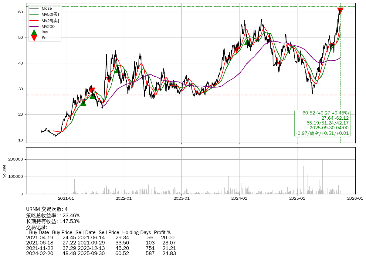 | 32 | ★URNM | +123.46% | +147.53% | -24.07% | 4 | -0.97/偏空/+0.51/+0.01 | 2020-07-28~2025-09-30 |