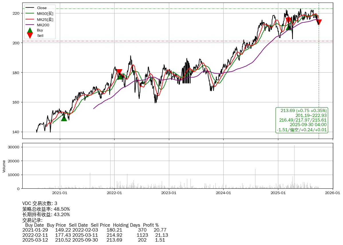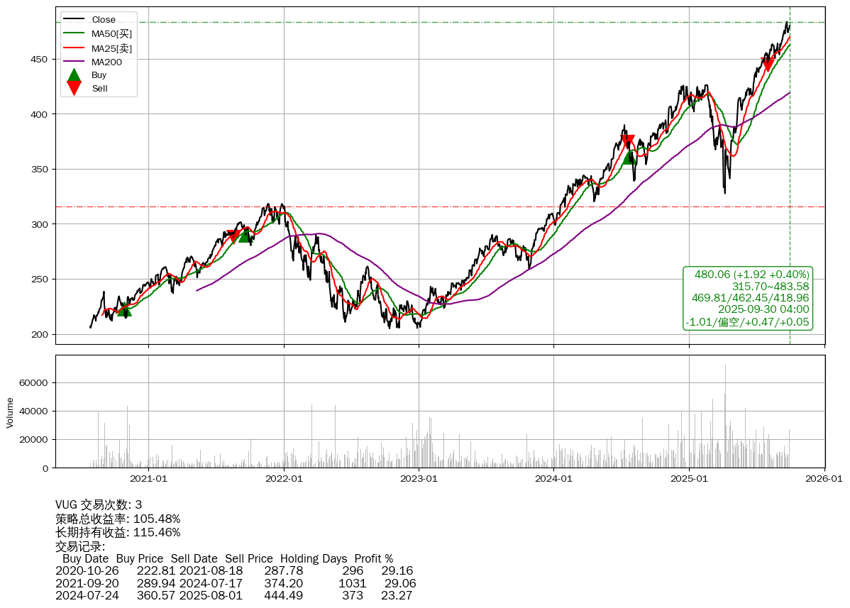 | 43 | ★VUG | +105.48% | +115.46% | -9.97% | 3 | -1.01/偏空/+0.47/+0.05 | 2020-07-27~2025-09-30 |