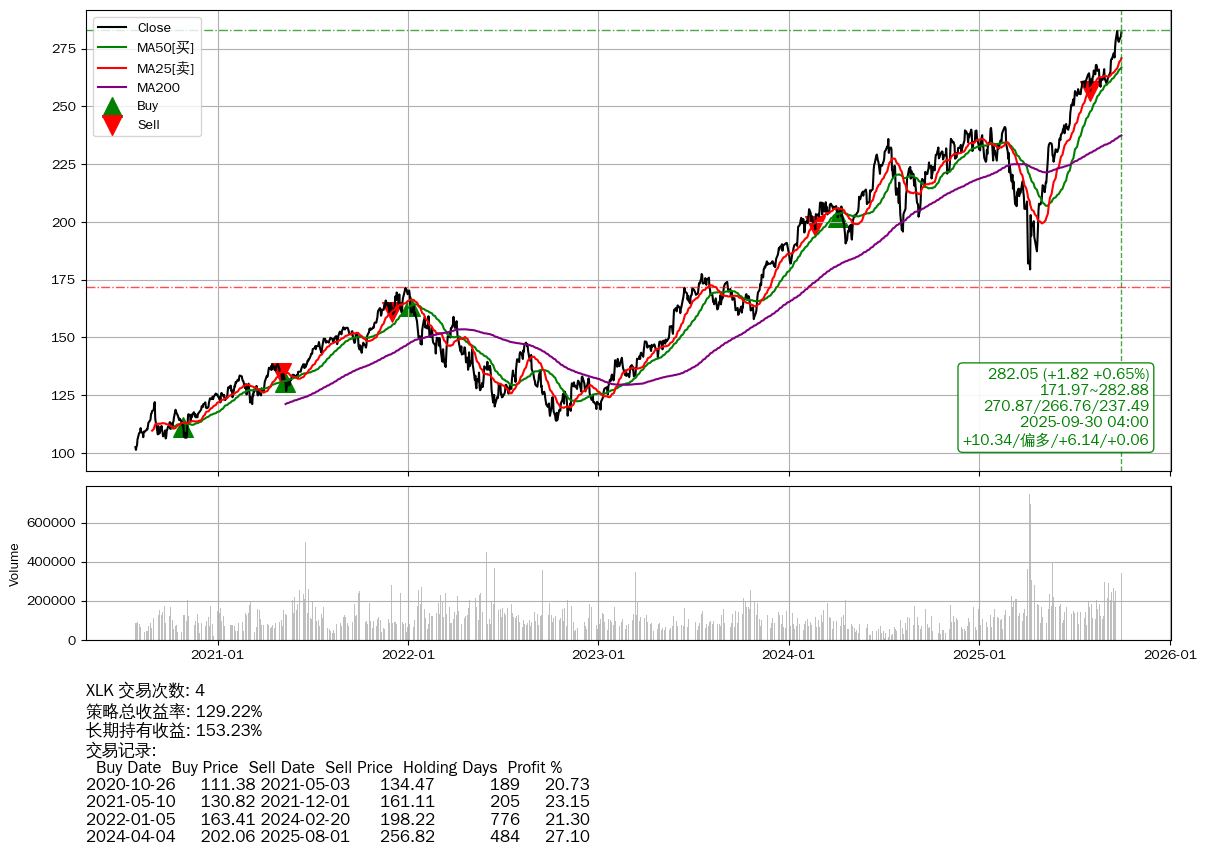 | 31 | ★XLK | +129.22% | +153.23% | -24.01% | 4 | +10.34/偏多/+6.14/+0.06 | 2020-07-27~2025-09-30 |