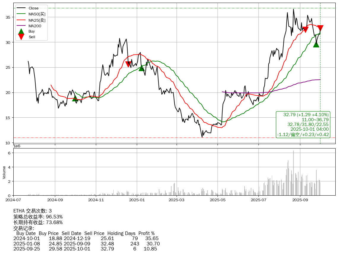| 50 | ★ETHA | +96.53% | +73.68% | +22.86% | 3 | -1.12/偏空/+0.23/+0.42 | 2024-07-23~2025-10-01 |