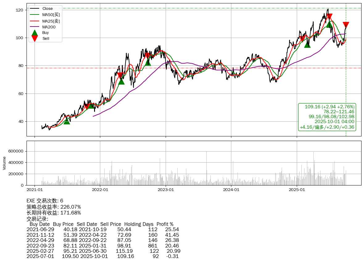 | 19 | 🟢EXE | +226.07% | +171.68% | +54.39% | 6 | +4.16/偏多/+2.90/+0.36 | 2021-02-10~2025-10-01 |